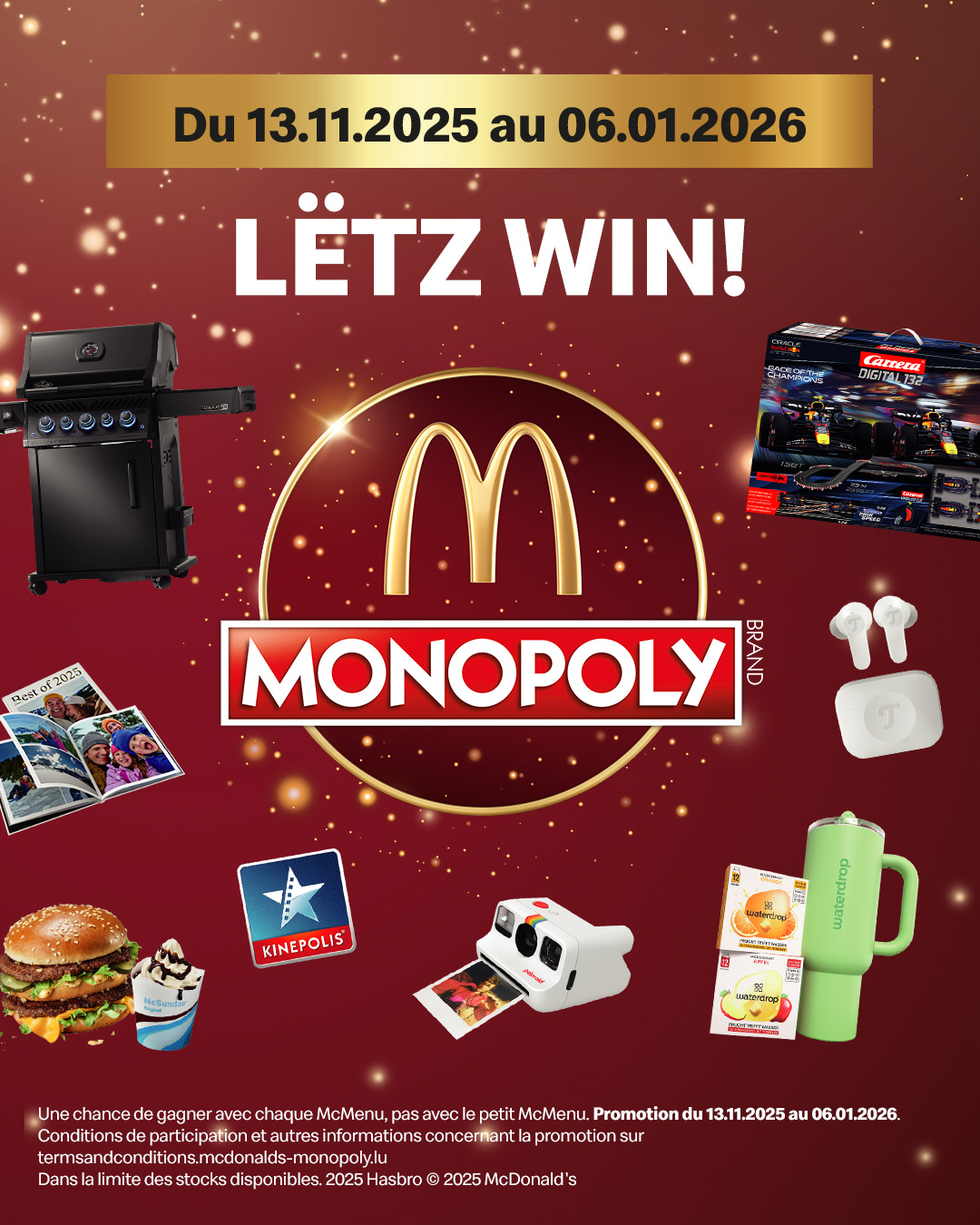 🎉 C’est (re)parti pour Monopoly chez McDonald’s Luxembourg ! Des menus, des flyers… et peut-être un lot à la clé 🎁 ➡️ Du 13 novembre au 6 janvier, chaque McMenü (hors Small) te donne une chance de g...